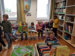 Die 1. Klasse machte sich am 25. Mai auf den Weg in die Bibliothek Haugsdorf. Frau Marlene Baumgartner erzählte den Kindern allerlei Wissenswertes über die Bücherei im Amtshaus. Da die Kinder nun schon selber lesen können, durfte sich jedes Kind ein Buch ausborgen. Im Anschluss tobten sich die kleinen Schüler:innen noch am Spielplatz aus.