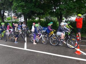 Stolz aber erschöpft nahmen die Fahrer:innen nach einer Stunde ihre Urkunde und ein Multifunktionstuch, das auch unter dem Helm getragen werden kann und bei Wind die Ohren schützt, entgegen. Aber auch wir Erwachsenen konnten etwas dazulernen. Denn das richtige Einstellen des Radhelmes ist gar nicht so einfach, aber sehr wichtig, sollte es einmal zu einem Sturz kommen.